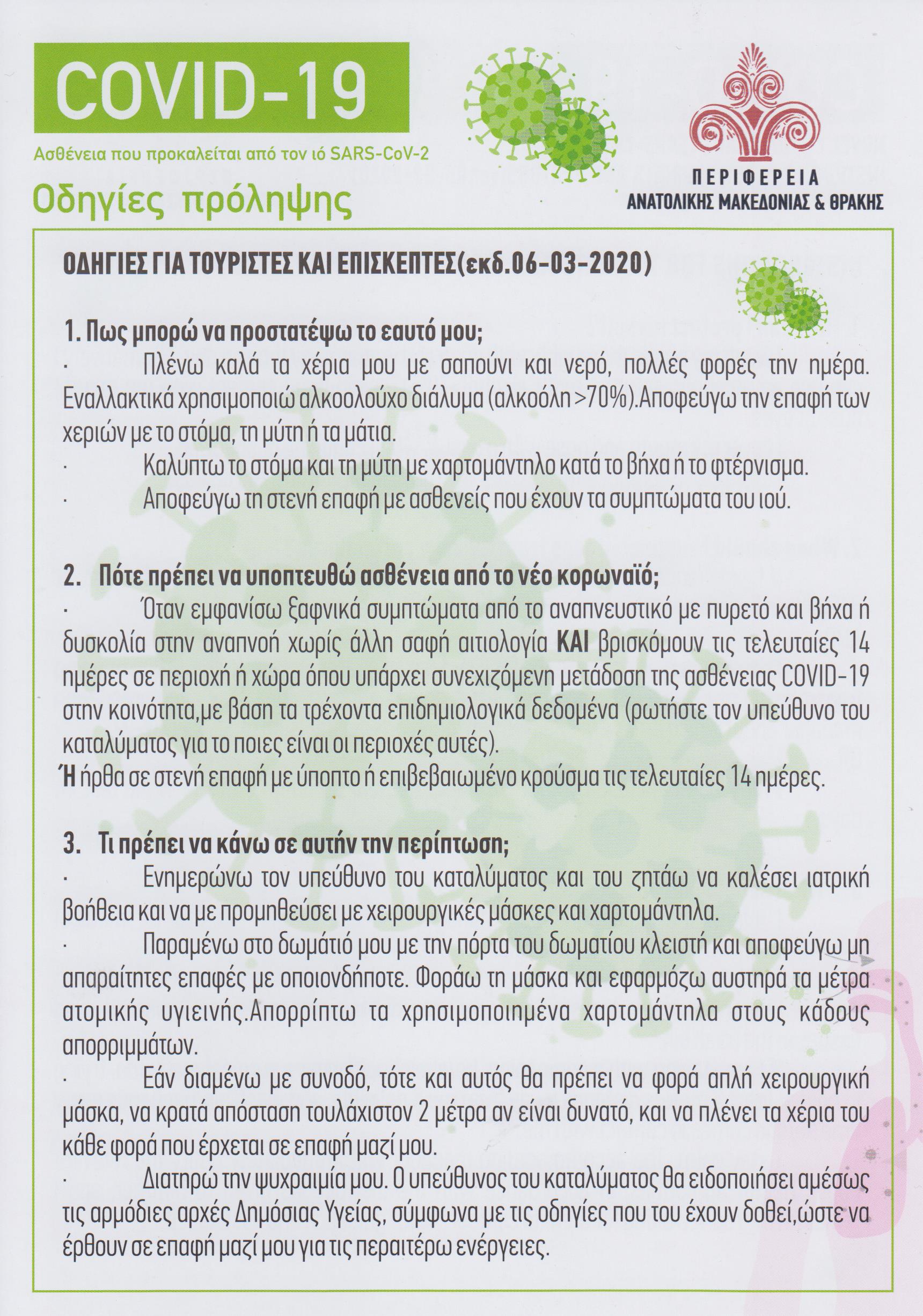 ΟΔΗΓΊΕΣ ΓΙΑ ΤΟΥΡΊΣΤΕΣ ΚΑΙ ΕΠΙΣΚΈΠΤΕΣ (εκδ. 06-03-2020)
