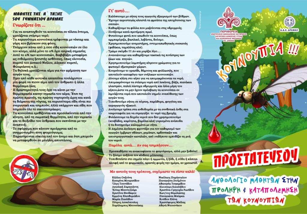 Στον παρακάτω σύνδεσμο μπορείτε να βλέπετε το προβλεπόμενο εβδομαδιαίο πρόγραμμα καταπολέμησης κουνουπιών στην Π.Ε. Δράμας, καθώς και να ενημερώνεστε σε θέματα πρόληψης με σκοπό τη μείωση του πληθυσμού των κουνουπιών και σε μέτρα ατομικής προστασίας.
