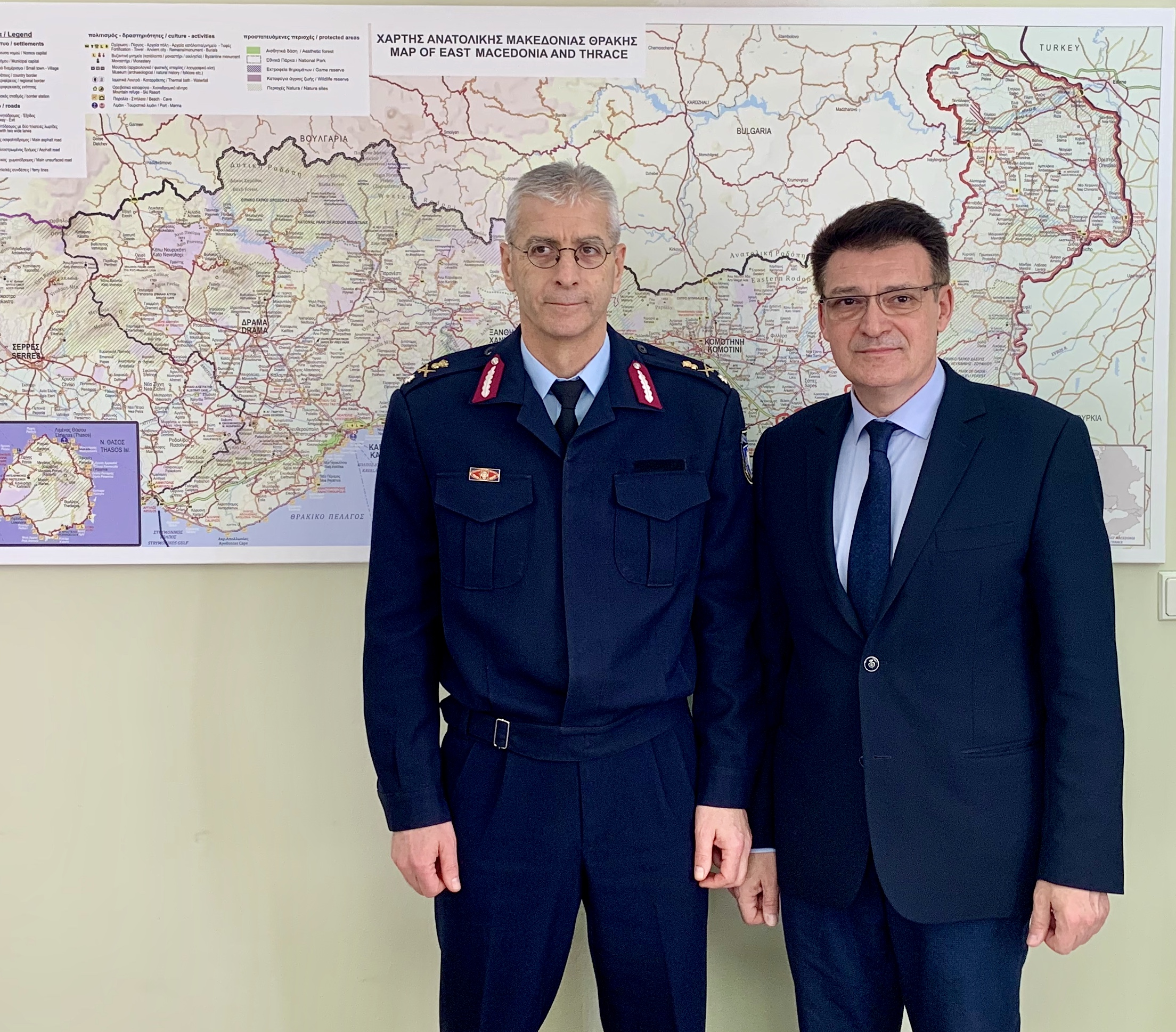 Ο Αντιπεριφερειάρχης Έβρου Δημήτριος Πέτροβιτς δέχτηκε σήμερα στο γραφείο του τον νέο Γενικό Περιφερειακό Αστυνομικό Διευθυντή Ανατολικής Μακεδονίας και Θράκης Ταξίαρχο Πασχάλη Συριτούδη.
