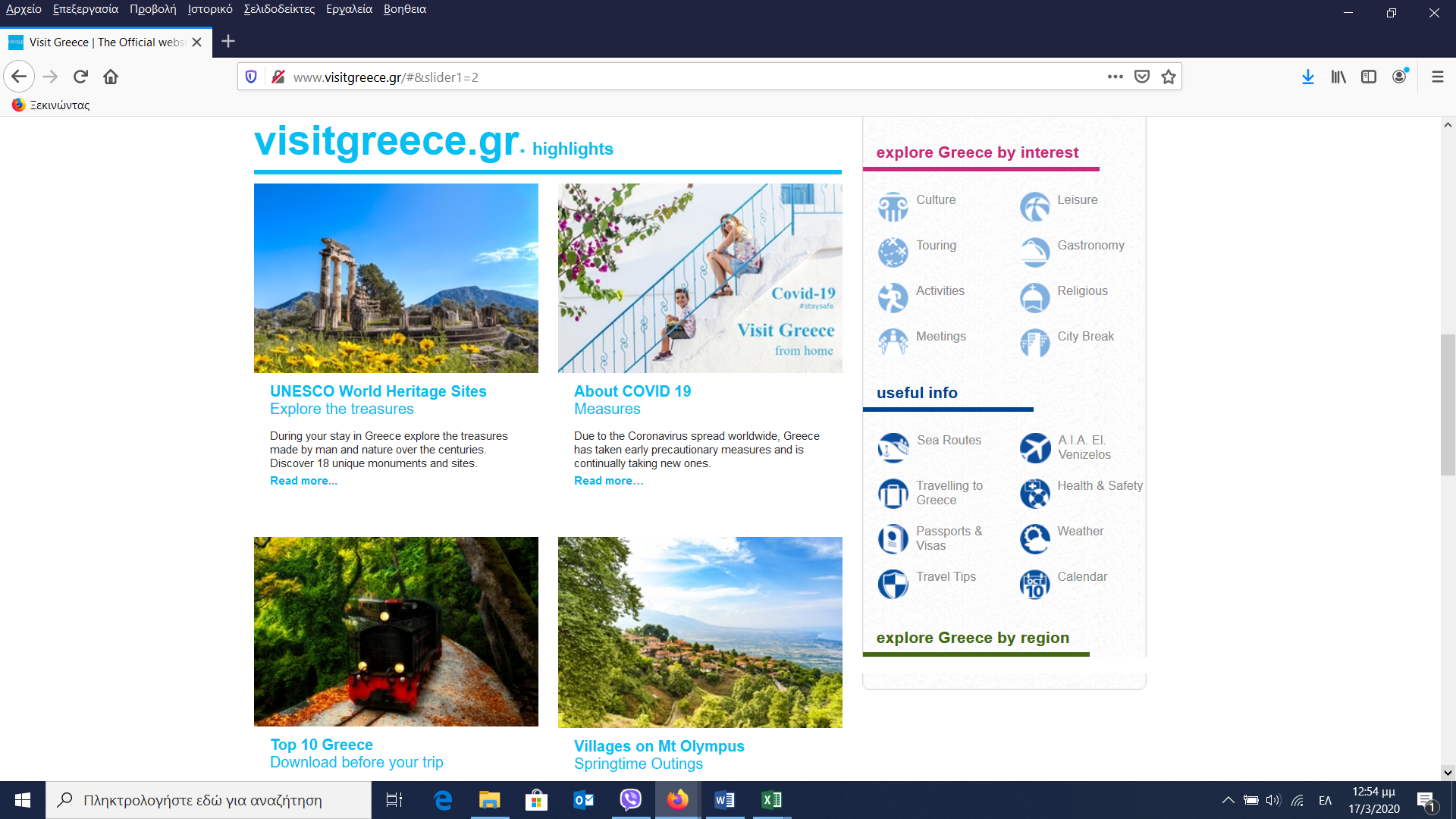 Ο ΕΟΤ παρέχει πληροφόρηση από την πρώτη μέρα για τα μέτρα που λαμβάνονται για τον κορωνοϊό από την Ελληνική Κυβέρνηση και αφορούν τον τουρισμό, τους επισκέπτες μας και την κατάσταση στην χώρα. Μπείτε στην ειδική ενότητα του visitgreece.gr και ενημερωθείτε αναλυτικά για οτιδήποτε νεότερο.